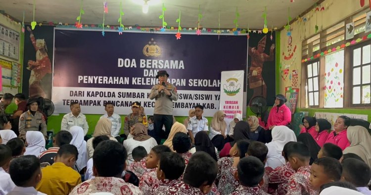 Agam, Sumbar – Kepolisian Daerah (Polda) Sumatera Barat kembali menunjukkan kepedulian dan empatinya kepada masyarakat terdampak bencana alam, khususnya dalam mendukung keberlangsungan pendidikan anak-anak.