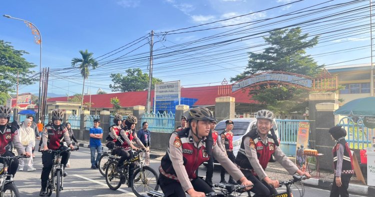 Padang, Sumbar — Personel Polisi Wanita dari satuan Puti Singgalang Ditsamapta Polda Sumatera Barat melaksanakan patroli pengamanan di kawasan Car Free Day sepanjang Jalan Sudirman, Padang, Minggu (18/1/2026).